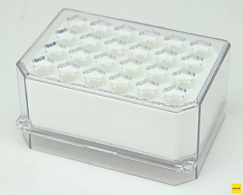 Комплект поставки: один аккумулятор холода белый IsoPack и один штатив с крышкой IsoRack для 24 микропробирок по 1,5/2 мл.